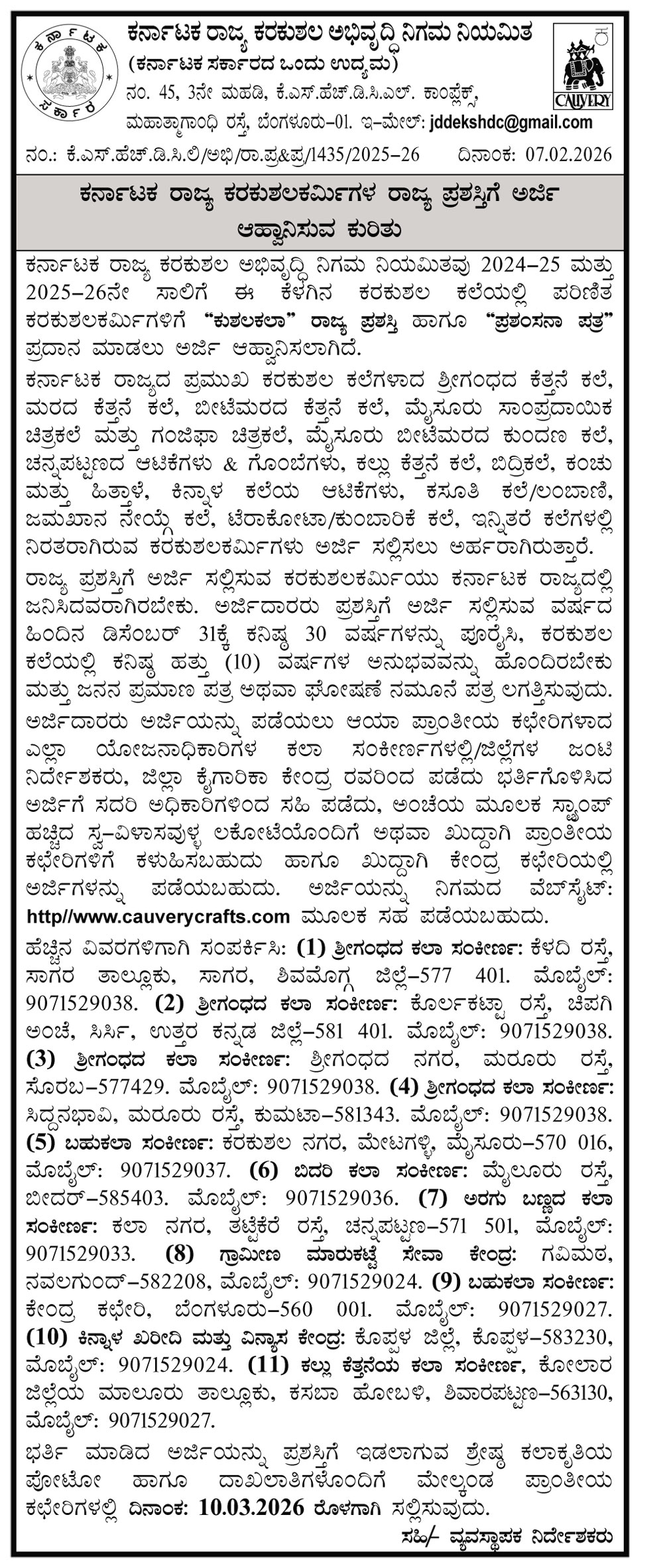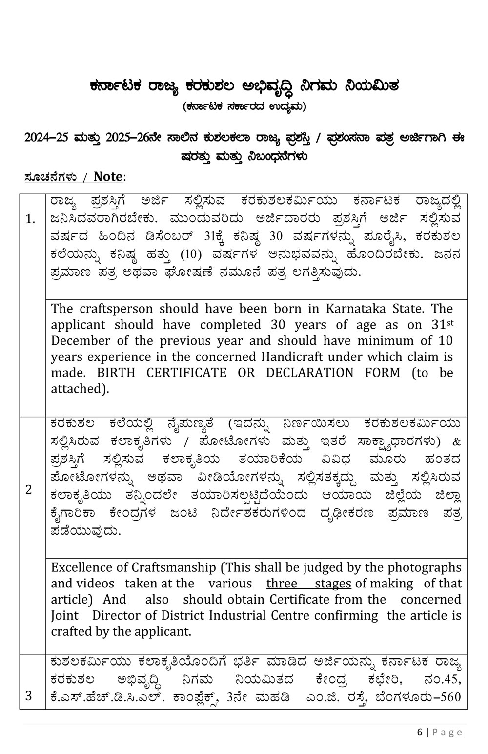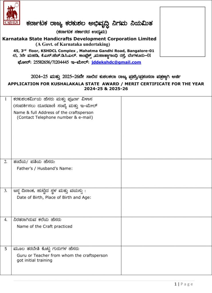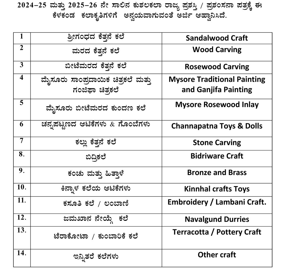 2024-25 & 2025-26 Kushalakala State Award Advertisement & Application